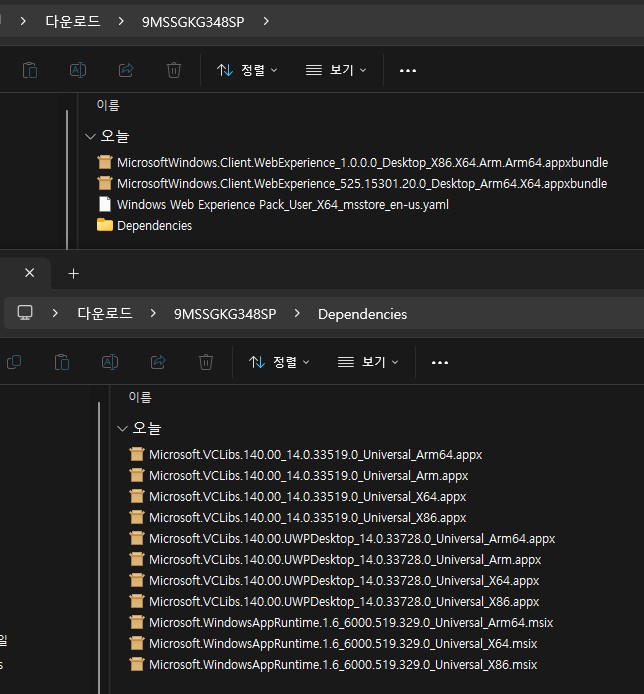 Microsoft Store 패키지 다운로드됨: C:\Users\superman\Downloads\9MSSGKG348SP\Dependencies\Microsoft.WindowsAppRuntime.1.6_6000.519.329.0_Universal_Arm64.msix